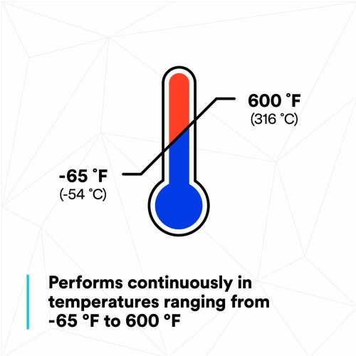 HOLDS IN INTENSE CONDITIONS: Resists flame/chemical exposure and performs continuously in temperatures ranging from -65 °F(-54 °C) to 600 °F(316 °C)