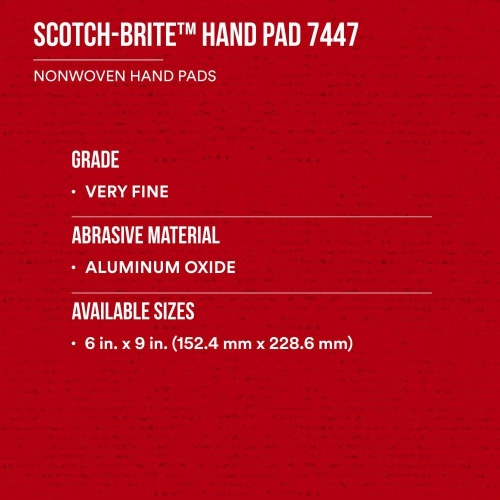 3M 7010366612 - 3M Scotch-Brite™ Hand Pad 7447, HP-HP, A/O Very Fine, Maroon,6 in x 9 in