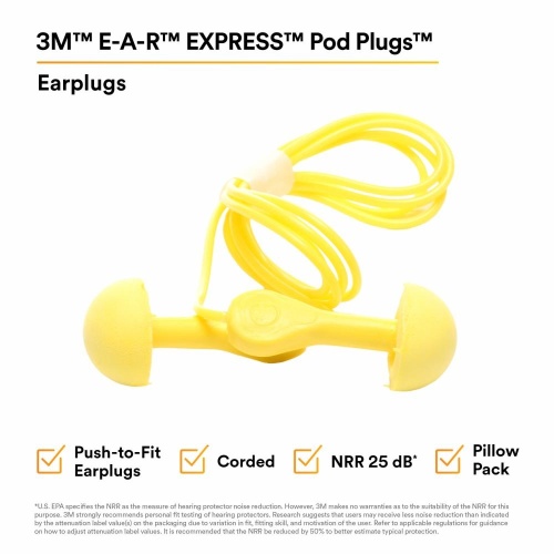 3M 7000127179 - 3M E-A-R™ EXPRESS™ Pod Plugs™ Earplugs 311-1115, Corded, Assorted Color Grips, Pillow Pack