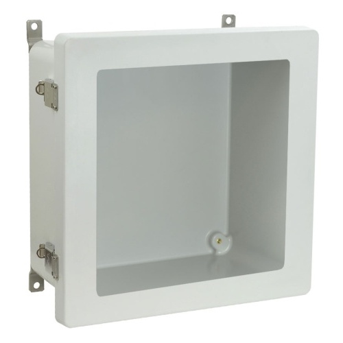 Allied Moulded AM1226LW AM Series JIC Size Fiberglass Enclosure with Windows 12" x 12" x 6" (HxWxD) Approx. Inside Dimensions Stainless Steel Lockable Snap Latch Hinged Cover.