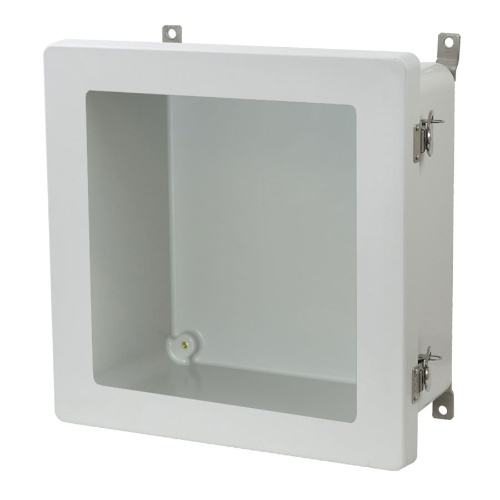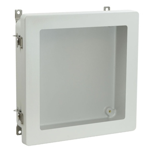 Allied Moulded AM1224TW AM Series JIC Size Fiberglass Enclosure with Windows 12" x 12" x 4" (HxWxD) Approx. Inside Dimensions Lockable Twist Latch Hinged Cover.
