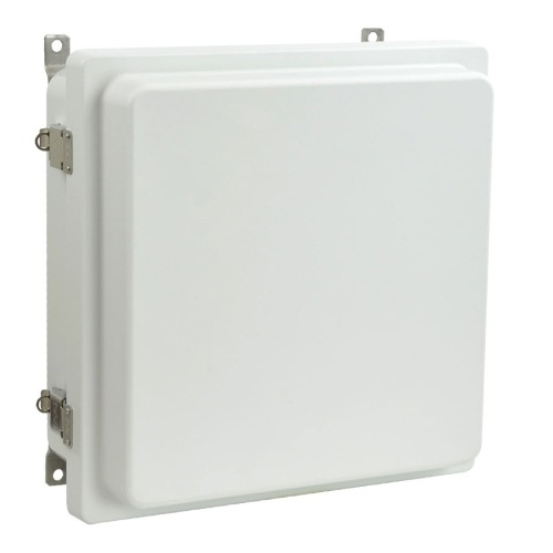 Allied Moulded AM1224RL AM-R Series JIC Size Fiberglass Enclosure 12.00" x 12.00" x 5.75" (HxWxD) Approx. Inside Dimensions Raised Stainless Steel Lockable Snap Latch Hinged Cover.