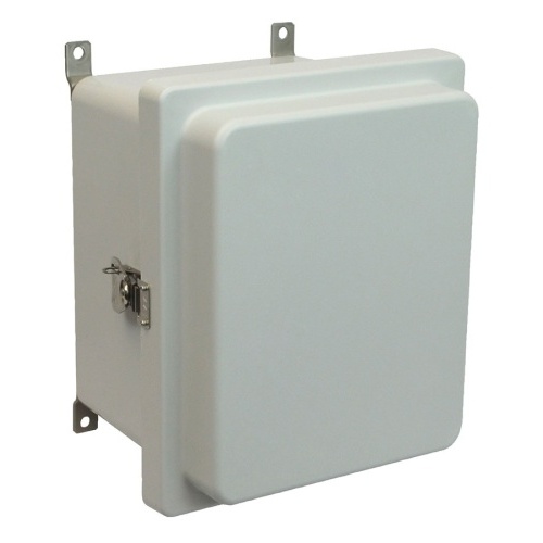 Allied Moulded AM1086RT AM-R Series JIC Size Fiberglass Enclosure 10.00" x 8.00" x 7.75" (HxWxD) Approx. Inside Dimensions Raised Stainless Steel Lockable Twist Latch Hinged Cover.