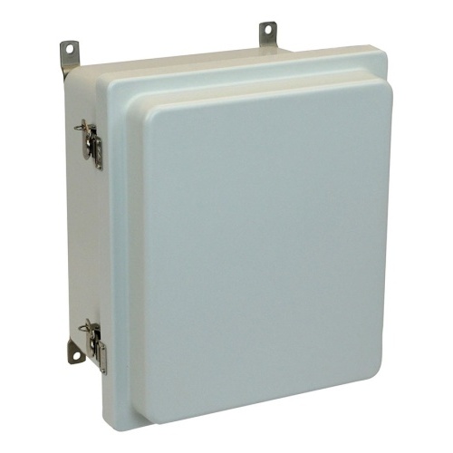Allied Moulded AM1206RT AM-R Series JIC Size Fiberglass Enclosure 12.00" x 10.00" x 7.75" (HxWxD) Approx. Inside Dimensions Raised Stainless Steel Lockable Twist Latch Hinged Cover.