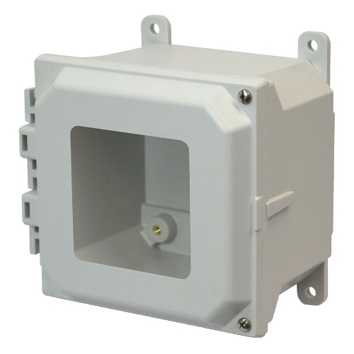 Allied Moulded AM664RHW AM-R Series JIC Size Fiberglass Enclosure with Windows 6.00" x 6.00" x 5.75" (HxWxD) Approx. Inside Dimensions Raised Hinged Screw Cover.