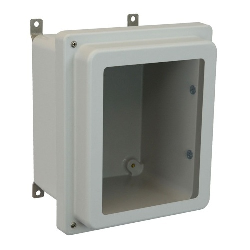 Allied Moulded AM864RHW AM-R Series JIC Size Fiberglass Enclosure with Windows 8.00" x 6.00" x 5.75" (HxWxD) Approx. Inside Dimensions Raised Hinged Screw Cover.