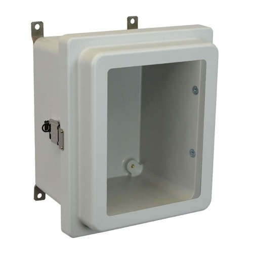 Allied Moulded AM1086RLW AM-R Series JIC Size Fiberglass Enclosure with Windows 10.00" x 8.00" x 7.75" (HxWxD) Approx. Inside Dimensions Raised Stainless Steel Lockable Snap Latch Hinged Cover.