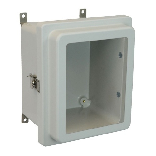 Allied Moulded AM1084RTW AM-R Series JIC Size Fiberglass Enclosure with Windows 10.00" x 8.00" x 5.75" (HxWxD) Approx. Inside Dimensions Raised Lockable Twist Latch Hinged Cover.