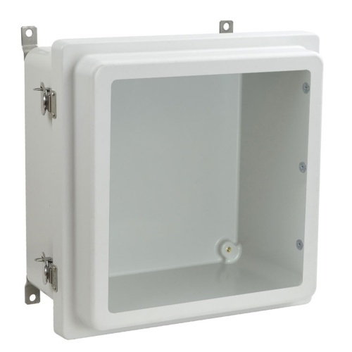 Allied Moulded AM1226RTW AM-R Series JIC Size Fiberglass Enclosure with Windows 12.00" x 12.00" x 7.75" (HxWxD) Approx. Inside Dimensions Raised Lockable Twist Latch Hinged Cover.