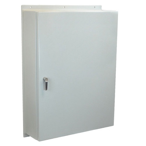 Non-corrosive, non-conductive, light weight with lower installation cost, easy to modify and longer life cycle compared to steel. Rigid design with back panel inserts plus molded-in mounting flanges and a spring loaded gasket system.