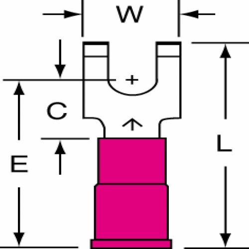 Scotchlok™ Fork Terminals, 3MCatalog Number MVU14-6FFBK, are flanged block terminals designed for reliable connections. These terminals have an overall length of 0.85 in, with a maximum conductor size of 14 AWG (2.08mm²) and a minimum conductor size of 16 AWG (1.31mm²). They are made of vinyl insulation material and have an overall width of 0.3 in. The connection width is 0.138 in (3.5 mm). - 7100164039
