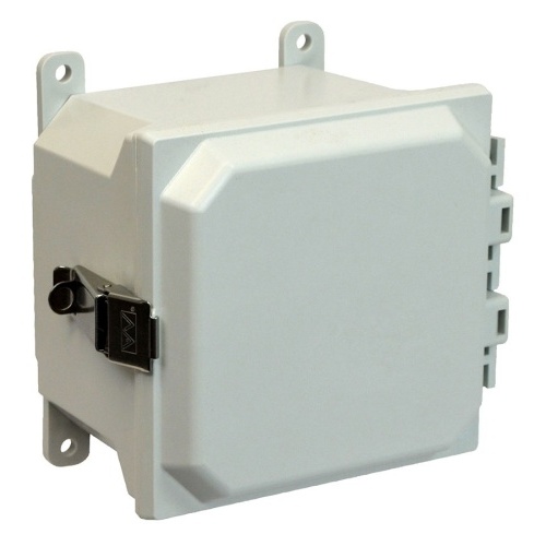 Allied Moulded AMU664L ULTRALINE AMU Series JIC Size Fiberglass Enclosure 6" x 6" x 4" (HxWxD) Approx. Inside Dimensions Metal Snap Latch Hinged Cover.