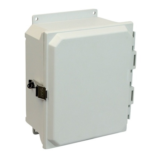 Allied Moulded AMU1084LF ULTRALINE AMU Series JIC Size Fiberglass Enclosure 10" x 8" x 4" (HxWxD) Approx. Inside Dimensions Metal Snap Latch Hinged Cover.