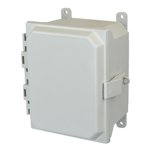 Allied Moulded AMU1084NL ULTRALINE AMU Series JIC Size Fiberglass Enclosure 10" x 8" x 4" (HxWxD) Approx. Inside Dimensions Nonmetallic Snap Latch Hinged Cover.