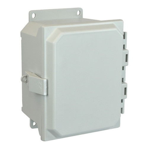 Allied Moulded AMU1084NLF ULTRALINE AMU Series JIC Size Fiberglass Enclosure 10" x 8" x 4" (HxWxD) Approx. Inside Dimensions Nonmetallic Snap Latch Hinged Cover.