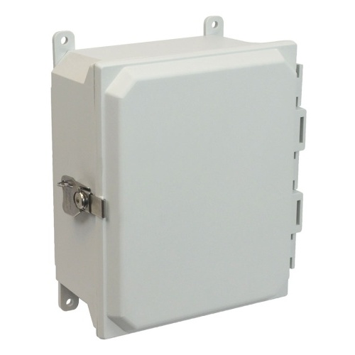 Allied Moulded AMU1084T ULTRALINE AMU Series JIC Size Fiberglass Enclosure 10" x 8" x 4" (HxWxD) Approx. Inside Dimensions Lockable Twist Latch Hinged Cover.