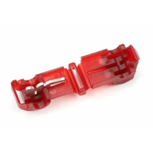Scotchlok™ Quick Disconnects are insulated self-stripping connectors designed for reliable electrical connections. They have a maximum operating temperature of 105 ℃ (221 ℉) and can accommodate conductor sizes ranging from 22 AWG to 18 AWG (0.34 mm² to 1 mm²). The connectors are made of flame-retardant nylon and feature a tin-plated brass element. They are UL listed and recommended for use with a 600 V maximum voltage rating. The disconnects are red in color and have a female disconnect type with a T-tap connection style. - 7000005801