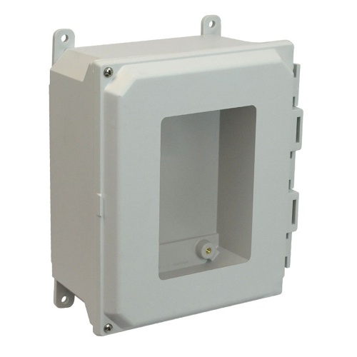 Allied Moulded AMU1084HW ULTRALINE AMU Series JIC Size Fiberglass Enclosure 10" x 8" x 4" (HxWxD) Approx. Inside Dimensions Hinged Screw Cover.