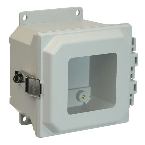 Allied Moulded AMU664LWF ULTRALINE AMU Series JIC Size Fiberglass Enclosure 6" x 6" x 4" (HxWxD) Approx. Inside Dimensions Metal Snap Latch Hinged Cover.