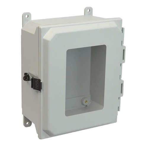 Allied Moulded AMU864LW ULTRALINE AMU Series JIC Size Fiberglass Enclosure 8" x 6" x 4" (HxWxD) Approx. Inside Dimensions Metal Snap Latch Hinged Cover.