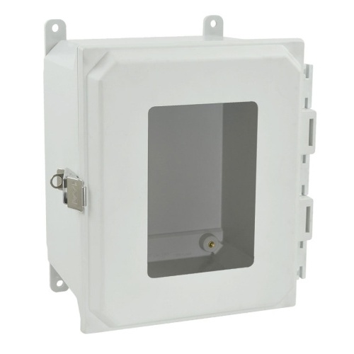 Allied Moulded AMU1086LW ULTRALINE AMU Series JIC Size Fiberglass Enclosure 10" x 8" x 6" (HxWxD) Approx. Inside Dimensions Metal Snap Latch Hinged Cover.