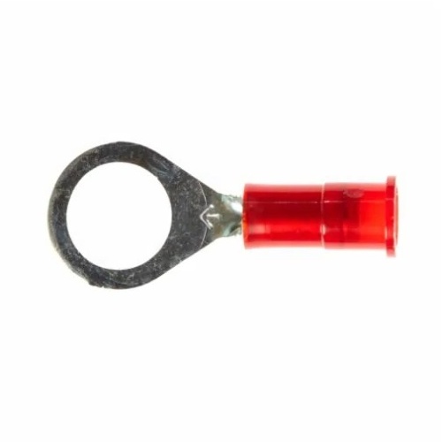 Scotchlok™ Ring Terminals, part number MNG18-610RX, are red in color and have an overall length of 1 inch (25.4 mm). They can handle a maximum conductor size of 18 AWG (0.823 mm²) and a minimum conductor size of 22 AWG (0.326 mm²). These terminals are made of nylon insulation material and have a maximum operating temperature of 105 ℃. Their overall width is 0.34 inch (8.63 mm). - 7000133411