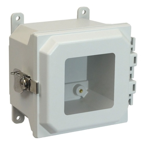 Allied Moulded AMU664TW ULTRALINE AMU Series JIC Size Fiberglass Enclosure with Windows 6" x 6" x 4" (HxWxD) Approx. Inside Dimensions Lockable Twist Latch Hinged Cover.