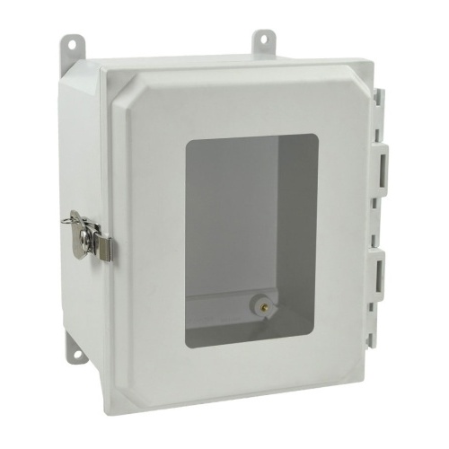 Allied Moulded AMU1086TW ULTRALINE AMU Series JIC Size Fiberglass Enclosure with Windows 10" x 8" x 6" (HxWxD) Approx. Inside Dimensions Lockable Twist Latch Hinged Cover.