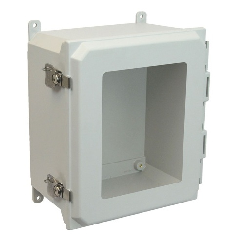 Allied Moulded AMU1648TW ULTRALINE AMU Series JIC Size Fiberglass Enclosure with Windows 16" x 14" x 8" (HxWxD) Approx. Inside Dimensions Lockable Twist Latch Hinged Cover.