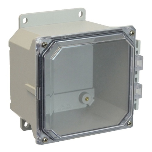 Allied Moulded AMU664CCF ULTRALINE AMU Series JIC Size Fiberglass Enclosure with Clear Covers 6" x 6" x 4" (HxWxD) Approx. Inside Dimensions Lift-Off Screw Cover.