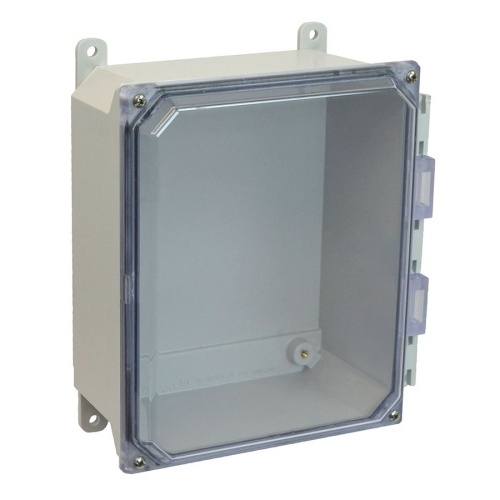 Allied Moulded AMU1084CC ULTRALINE AMU Series JIC Size Fiberglass Enclosure with Clear Covers 10" x 8" x 4" (HxWxD) Approx. Inside Dimensions Lift-Off Screw Cover.
