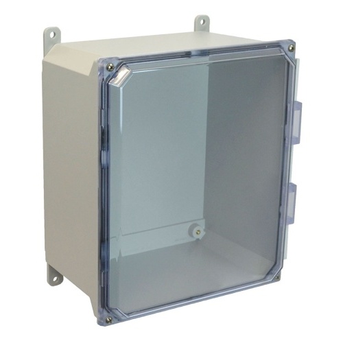 Allied Moulded AMU1206CC ULTRALINE AMU Series JIC Size Fiberglass Enclosure with Clear Covers 12" x 10" x 6" (HxWxD) Approx. Inside Dimensions Lift-Off Screw Cover.