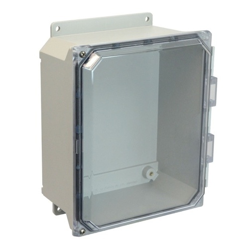 Allied Moulded AMU1084CCHF ULTRALINE AMU Series JIC Size Fiberglass Enclosure with Clear Covers 10" x 8" x 4" (HxWxD) Approx. Inside Dimensions Hinged Screw Cover.