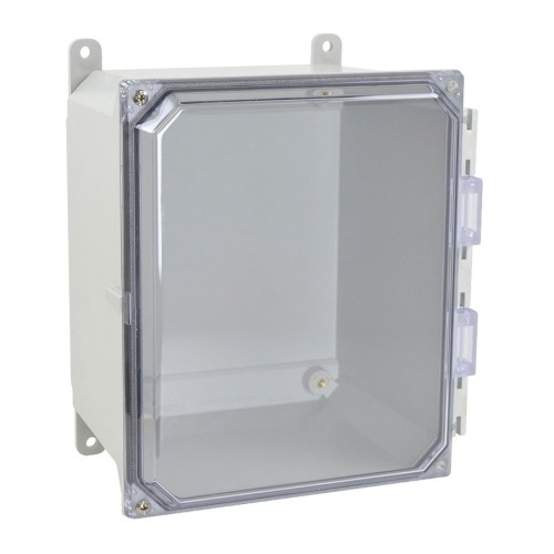 Allied Moulded AMU1086CCH ULTRALINE AMU Series JIC Size Fiberglass Enclosure with Clear Covers 10" x 8" x 6" (HxWxD) Approx. Inside Dimensions Hinged Screw Cover.