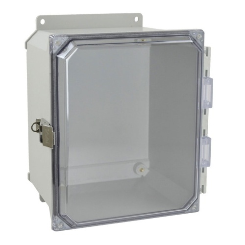 Allied Moulded AMU1086CCLF ULTRALINE AMU Series JIC Size Fiberglass Enclosure with Clear Covers 10" x 8" x 6" (HxWxD) Approx. Inside Dimensions Metal Snap Latch Hinged Cover.