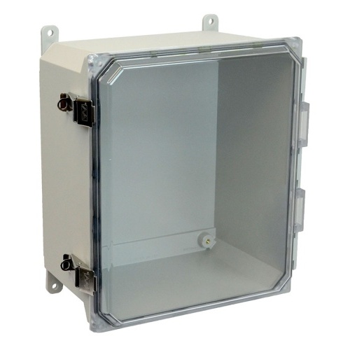 Allied Moulded AMU1648CCL ULTRALINE AMU Series JIC Size Fiberglass Enclosure with Clear Covers 16" x 14" x 8" (HxWxD) Approx. Inside Dimensions Metal Snap Latch Hinged Cover.