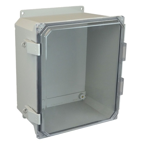 Allied Moulded AMU1648CCNLF ULTRALINE AMU Series JIC Size Fiberglass Enclosure with Clear Covers 16" x 14" x 8" (HxWxD) Approx. Inside Dimensions Nonmetallic Snap Latch Hinged Cover.
