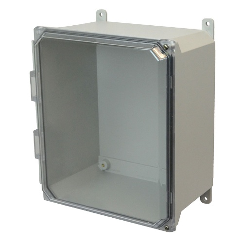 Allied Moulded AMU1206CCT ULTRALINE AMU Series JIC Size Fiberglass Enclosure with Clear Covers 12" x 10" x 6" (HxWxD) Approx. Inside Dimensions Lockable Twist Latch Hinged Cover.