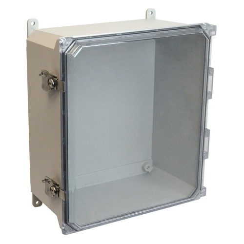 Allied Moulded AMU1648CCT ULTRALINE AMU Series JIC Size Fiberglass Enclosure with Clear Covers 16" x 14" x 8" (HxWxD) Approx. Inside Dimensions Lockable Twist Latch Hinged Cover.