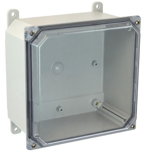 Allied Moulded AMP884CC POLYLINE AMP Series JIC Size Polycarbonate Enclosure with Clear Covers 8" x 8" x 4" (HxWxD) Approx. Inside Dimensions Lift-Off Screw Cover.