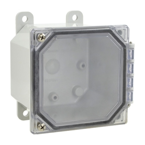 Allied Moulded AMP443CCH POLYLINE AMP Series JIC Size Polycarbonate Enclosure with Clear Covers 4" x 4" x 3" (HxWxD) Approx. Inside Dimensions Hinged Screw Cover.