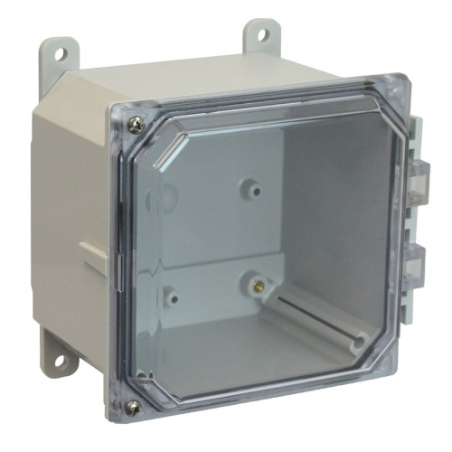 Allied Moulded AMP664CCH POLYLINE AMP Series JIC Size Polycarbonate Enclosure with Clear Covers 6" x 6" x 4" (HxWxD) Approx. Inside Dimensions Hinged Screw Cover.