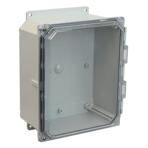 Allied Moulded AMP1084CCHF POLYLINE AMP Series JIC Size Polycarbonate Enclosure with Clear Covers 10" x 8" x 4" (HxWxD) Approx. Inside Dimensions Hinged Screw Cover.