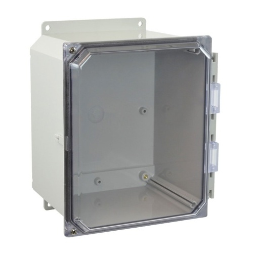 Allied Moulded AMP1086CCHF POLYLINE AMP Series JIC Size Polycarbonate Enclosure with Clear Covers 10" x 8" x 6" (HxWxD) Approx. Inside Dimensions Hinged Screw Cover.