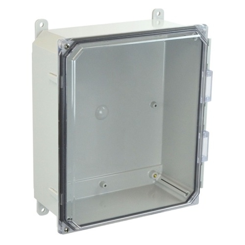 Allied Moulded AMP1204CCH POLYLINE AMP Series JIC Size Polycarbonate Enclosure with Clear Covers 12" x 10" x 4" (HxWxD) Approx. Inside Dimensions Hinged Screw Cover.