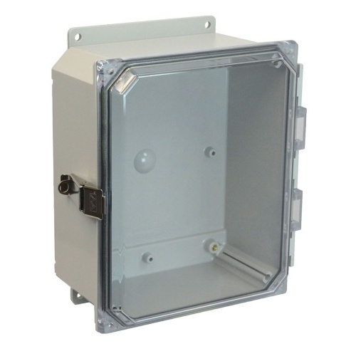 Allied Moulded AMP864CCLF POLYLINE AMP Series JIC Size Polycarbonate Enclosure with Clear Covers 8" x 6" x 4" (HxWxD) Approx. Inside Dimensions Stainless Steel Lockable Snap Latch Hinged Cover.