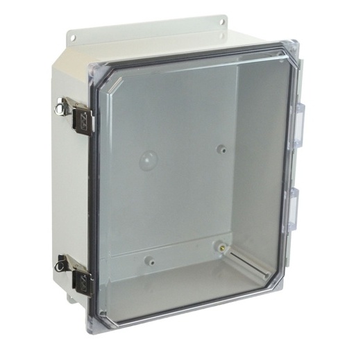 Allied Moulded AMP1204CCLF POLYLINE AMP Series JIC Size Polycarbonate Enclosure with Clear Covers 12" x 10" x 4" (HxWxD) Approx. Inside Dimensions Stainless Steel Lockable Snap Latch Hinged Cover.