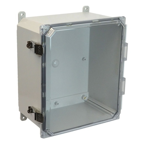 Allied Moulded AMP1206CCL POLYLINE AMP Series JIC Size Polycarbonate Enclosure with Clear Covers 12" x 10" x 6" (HxWxD) Approx. Inside Dimensions Stainless Steel Lockable Snap Latch Hinged Cover.