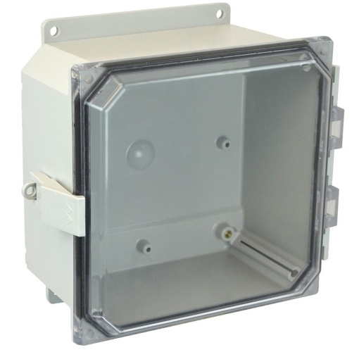 Allied Moulded AMP884CCNLF POLYLINE AMP Series JIC Size Polycarbonate Enclosure with Clear Covers 8" x 8" x 4" (HxWxD) Approx. Inside Dimensions Nonmetallic Snap Latch Hinged Cover.
