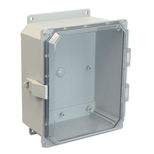 Allied Moulded AMP1084CCNLF POLYLINE AMP Series JIC Size Polycarbonate Enclosure with Clear Covers 10" x 8" x 4" (HxWxD) Approx. Inside Dimensions Nonmetallic Snap Latch Hinged Cover.